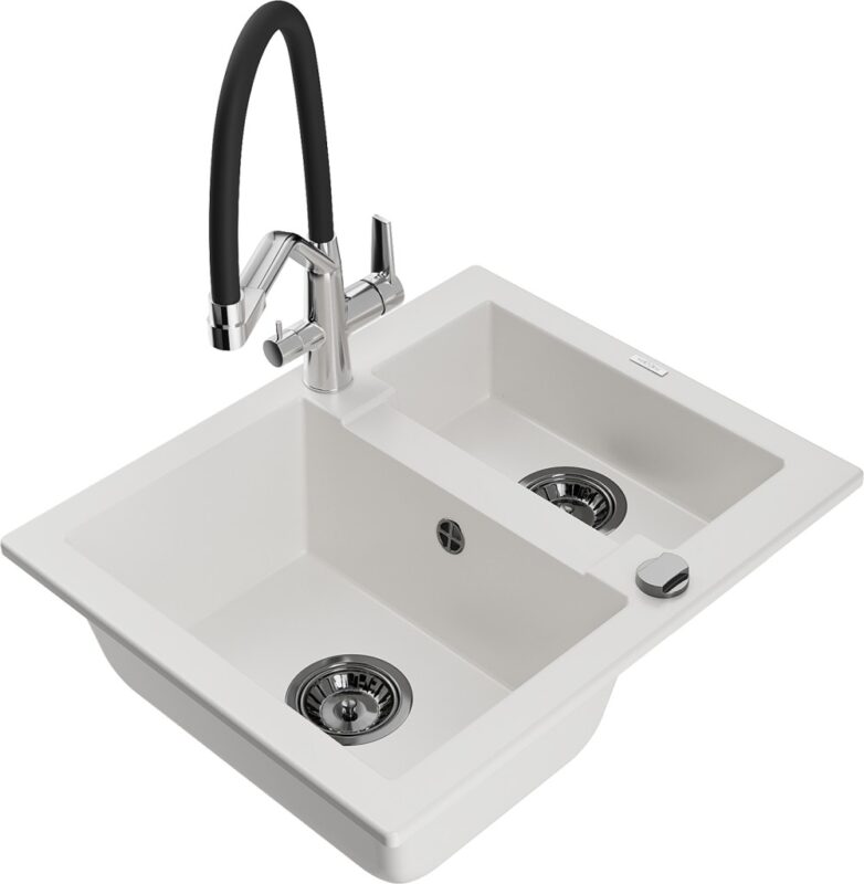MEXEN/S MEXEN/S – Carlos granitový drez 1.5 vrátane batérie Duo, biela 6518-20-671701-07-B