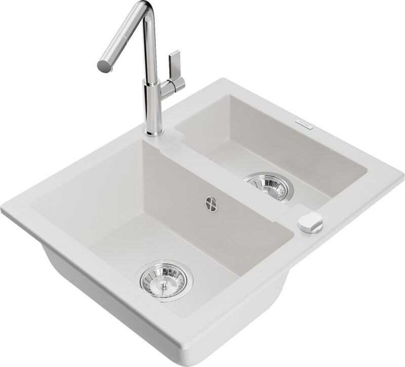 MEXEN/S MEXEN/S – Carlos granitový drez 1.5 vrátane batérie Flora, biela 6518-20-670401-00