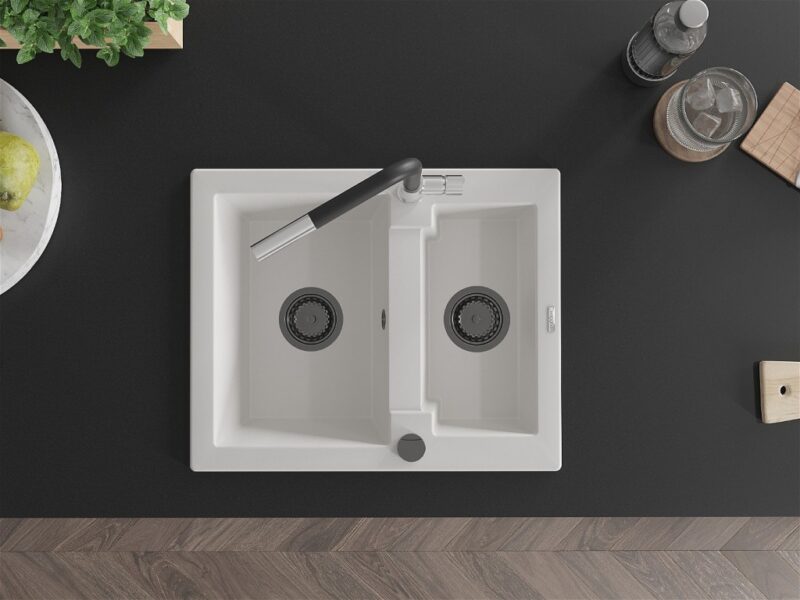 MEXEN/S MEXEN/S – Carlos granitový drez 1.5 vrátane batérie Flora, biela 6518-20-670401-07-B