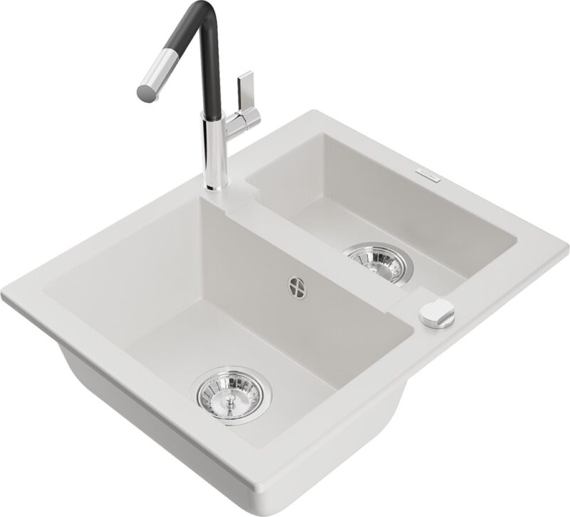 MEXEN/S MEXEN/S – Carlos granitový drez 1.5 vrátane batérie Flora, biela 6518-20-670401-07