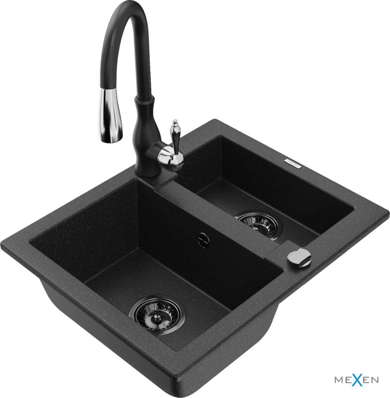 MEXEN/S MEXEN/S – Carlos granitový drez 1.5 vrátane batérie Savita, čierna/strieborná metalík 6518-73-672601-70-B