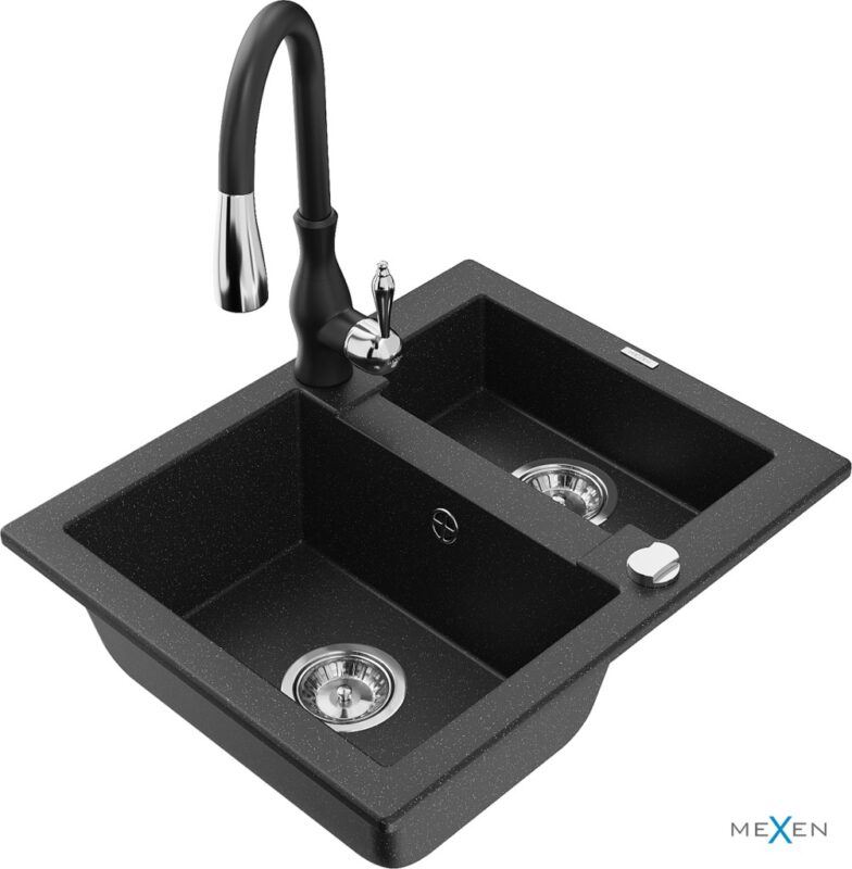 MEXEN/S MEXEN/S – Carlos granitový drez 1.5 vrátane batérie Savita, čierna/strieborná metalík 6518-73-672601-70