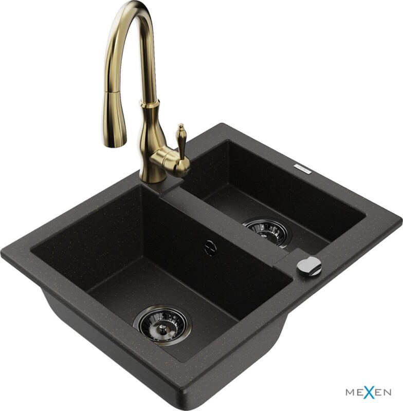 MEXEN/S MEXEN/S – Carlos granitový drez 1.5 vrátane batérie Savita, čierna/zlatá metalik 6518-75-672601-50-B
