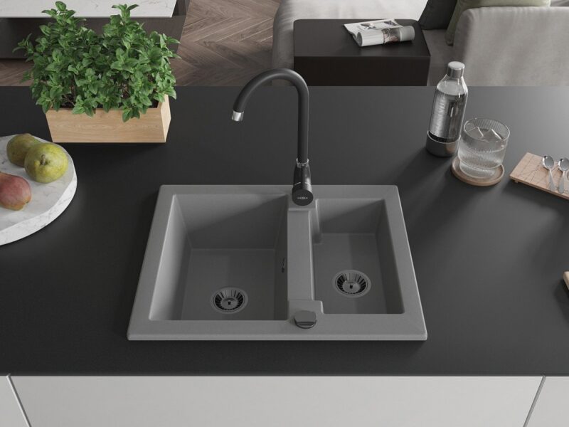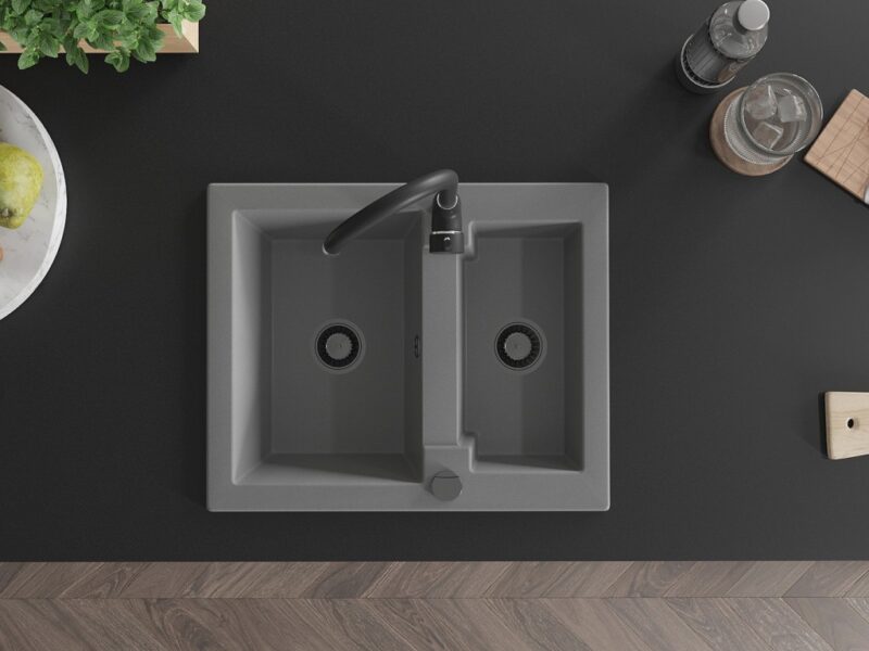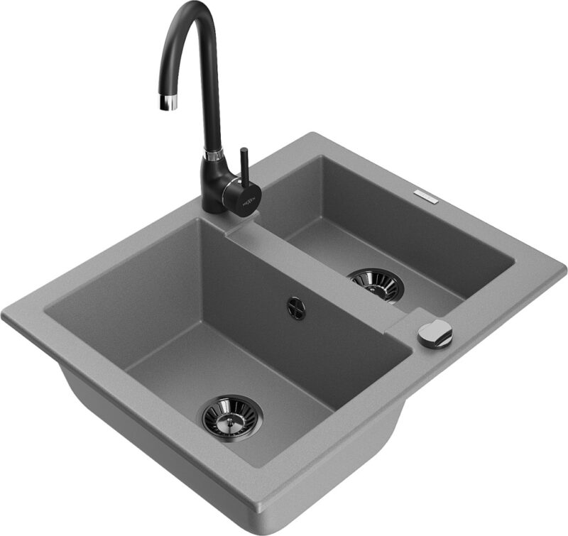 Technické dáta: drez: Rozmer: 582 x 475 x 177 mm Hĺbka komory: 162 mm (väčšia), 102 mm (menšia) Rozmery komory: 395×272 mm (väčšie), 375×182 mm (menšie) Priemer odtoku: ø90 mm Typ: 1,5 komory Typ: Zapustené do pracovnej dosky Šedá farba Povrchová úprava sifónu: čierna Materiál: žula (80% žulové kamenivo, 20% živice) Prepadový otvor: Áno Otvory: (batérie, automatické) 2 Vysoká odolnosť proti poškriabaniu a zmene farby Odolnosť proti tepelným šokom Ľahko čistiteľný povrch Jeden dodatočný vyfrézovaný otvor na samodierovanie ø35 kuchynská batéria: Materiál: mosadz Čierna farba Hlava: Keramická Prevzdušňovač: Áno Typ: Jedna páka Výška batérie: 335 mm Rozsah výtoku: 180 mm(GT) Ean: 5905315016683