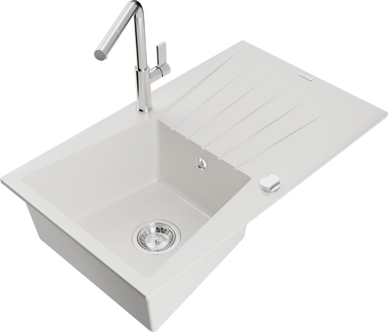 MEXEN/S MEXEN/S – Cesar granitový drez 1-miska s odkvapkávačom vrátane batérie Flora, biela 6514-20-670401-00