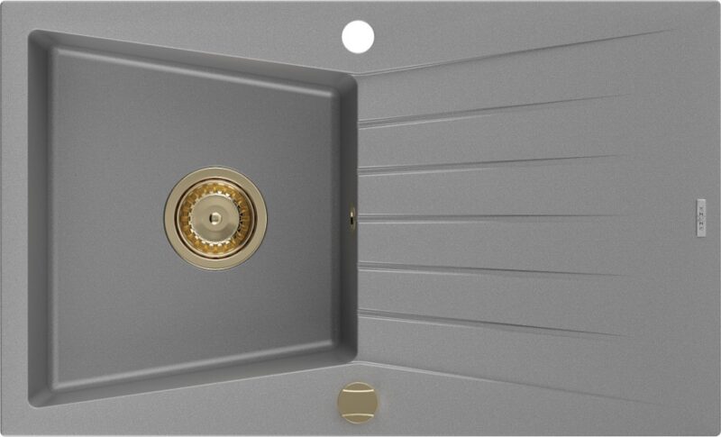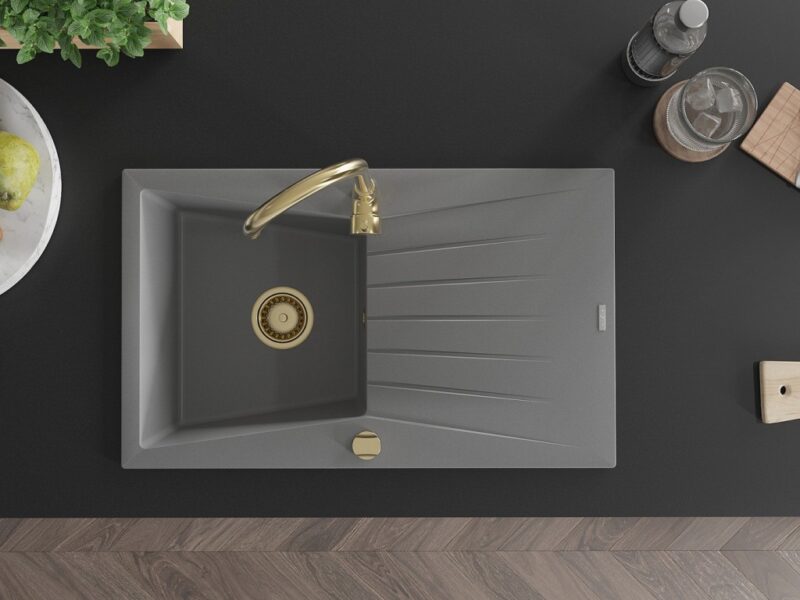 MEXEN/S MEXEN/S – Cesar granitový drez 1 s odkvapkávačom 775×470 mm, šedá, + zlatý sifón 6514771010-71-G