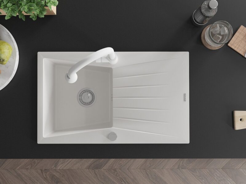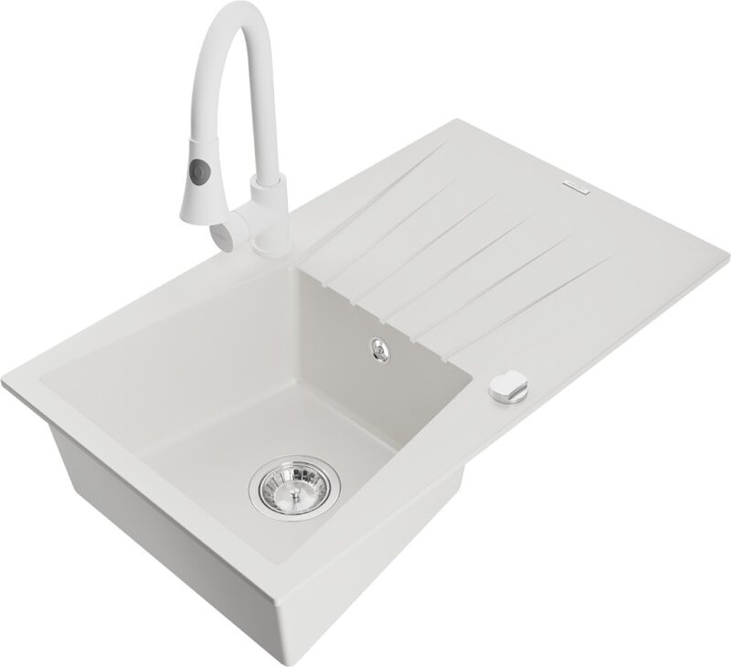 MEXEN/S MEXEN/S – Cesar granitový drez 1 s odkvapkávačom vrátane batérie Elia, biela 6514-20-670101-20