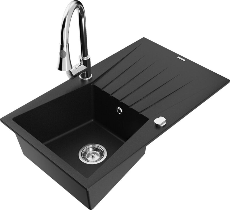 MEXEN/S MEXEN/S – Cesar granitový drez 1 s odkvapkávačom vrátane batérie Elia, čierna 6514-77-670101-00