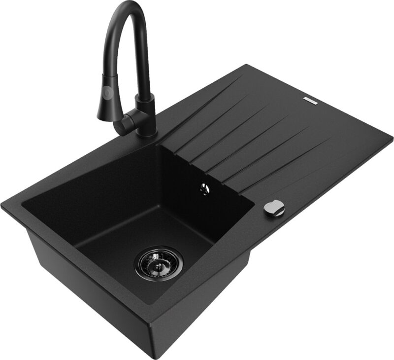 MEXEN/S MEXEN/S – Cesar granitový drez 1 s odkvapkávačom vrátane batérie Elia, čierna 6514-77-670101-70-B