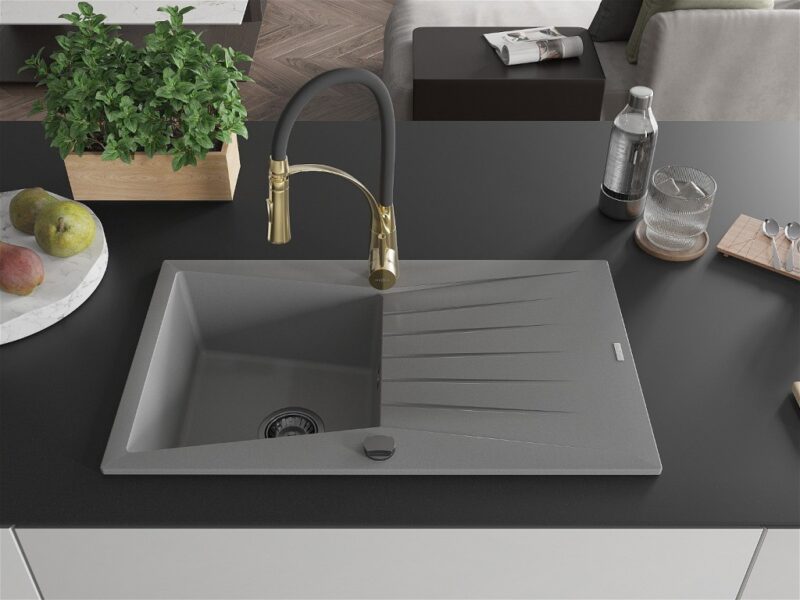 MEXEN/S MEXEN/S – Cesar granitový drez s odkvapkávačom vrátane batérie Aster, šedá 6514-71-73450-57-B