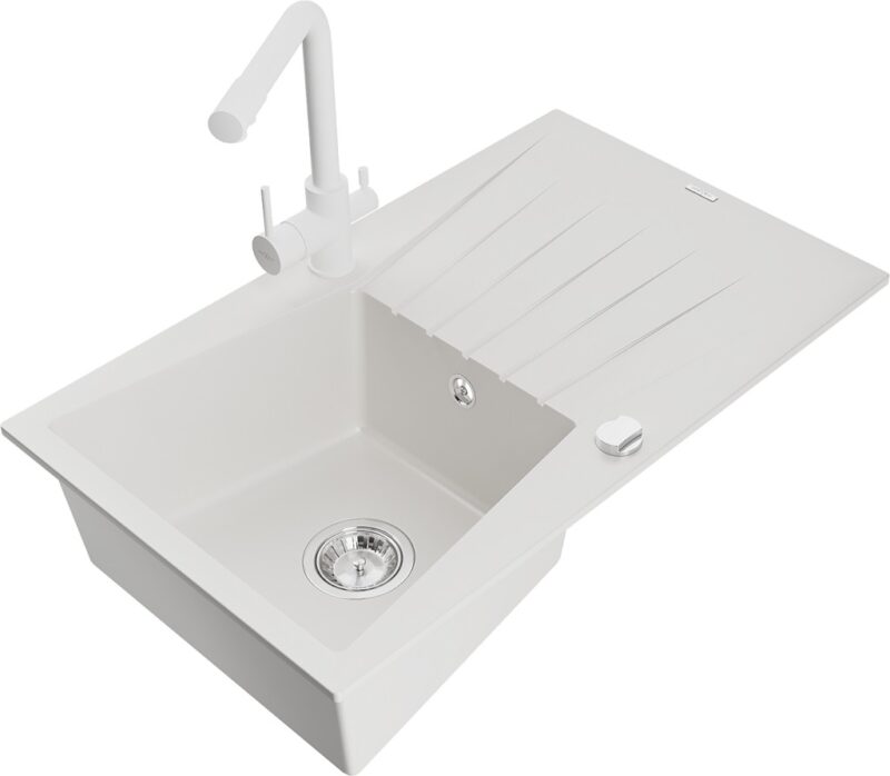 MEXEN/S MEXEN/S – Cesar granitový drez s odkvapkávačom vrátane batérie Duero, biela 6514-20-671600-20