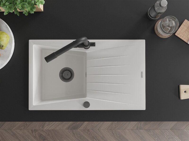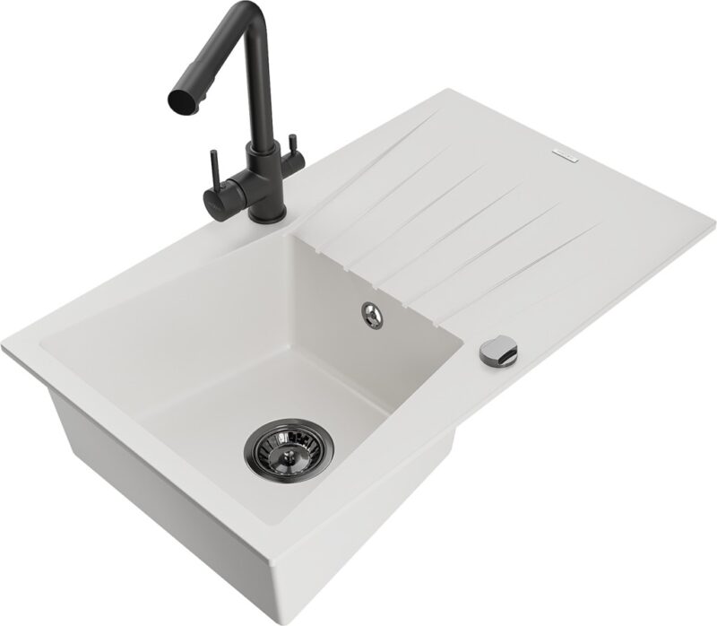 MEXEN/S MEXEN/S – Cesar granitový drez s odkvapkávačom vrátane batérie Duero, biela 6514-20-671600-70