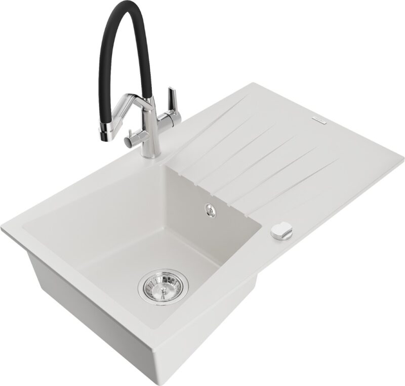 MEXEN/S MEXEN/S – Cesar granitový drez s odkvapkávačom vrátane batérie Duo, biela 6514-20-671701-07