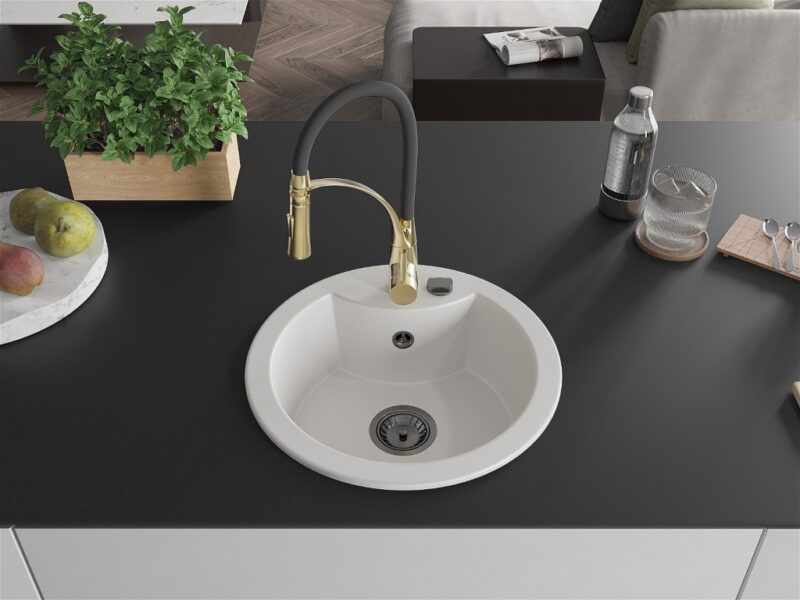 MEXEN/S MEXEN/S – Diego granitový drez 1-miska vrátane batérie Aster, biela 6512-20-73450-57-B