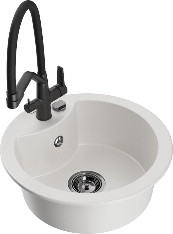 MEXEN/S MEXEN/S – Diego granitový drez 1-miska vrátane batérie Duo, biela 6512-20-671701-70-B