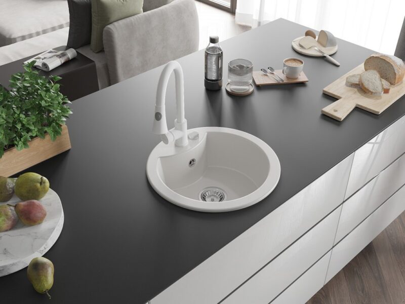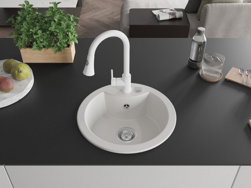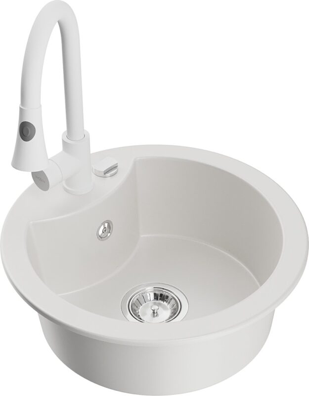 MEXEN/S MEXEN/S – Diego granitový drez 1-miska vrátane batérie Elia, biela 6512-20-670101-20