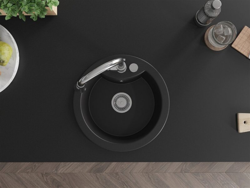 MEXEN/S MEXEN/S – Diego granitový drez 1-miska vrátane batérie Elia, čierna 6512-77-670101-00