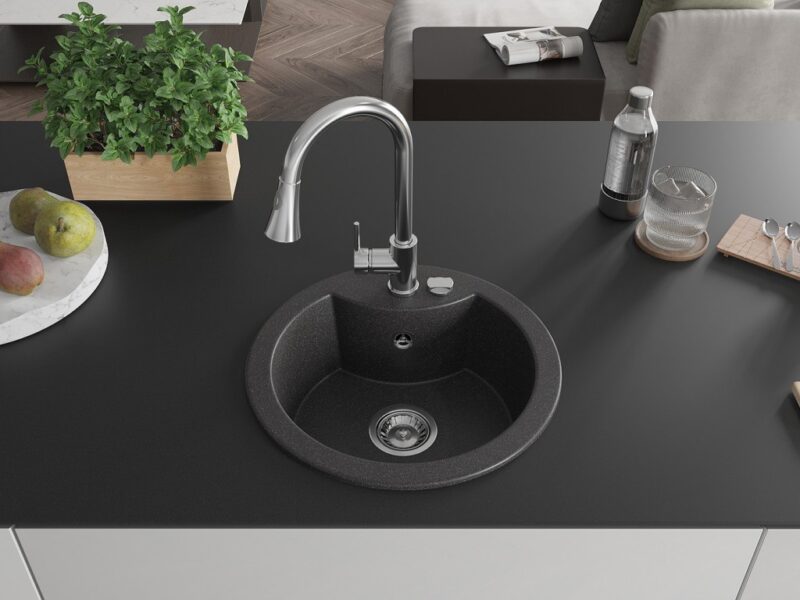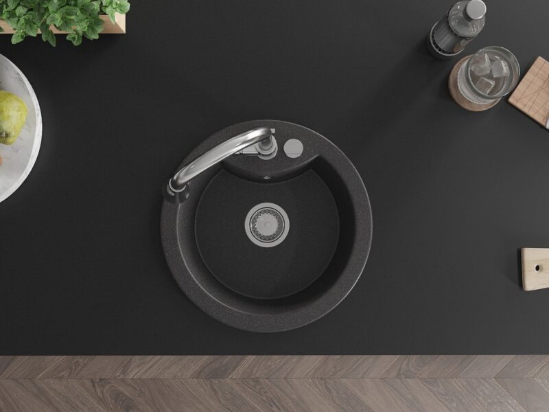 Technické údaje: Kuchynský drez: Rozmer: 488x488x167 mm Hĺbka komory: 157 mm Šírka komory: 406 mm Priemer odtoku: ø90 mm Typ: 1-komorový Typ: Zapustené do pracovnej dosky Farba: Škvrnitá čierna Povrchová úprava sifónu: Chrome Materiál: žula (80% žulové kamenivo 20% živice) Prepadový otvor: Áno Otvory: (batérie, automat) 2 Vysoká odolnosť proti poškriabaniu a zmene farby Odolnosť proti tepelným šokom Povrch pre ľahké čistenie Jeden dodatočný vyfrézovaný otvor na samodierovanie ø35 Kuchynská batéria: Materiál: mosadz Farba: Chrome Hlava: Keramická Perlátor: Áno Typ: Jednopákové Výška batérie: 380 mm Rozsah výtoku: 252 mm Typ výtoku: Výsuvný(GT) Ean: 5905315030238