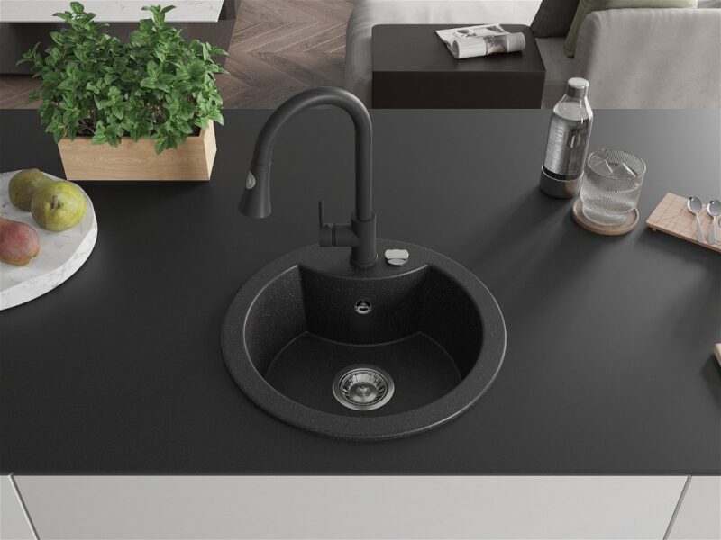 MEXEN/S MEXEN/S – Diego granitový drez 1-miska vrátane batérie Elia, čierna/strieborná metalík 6512-73-670101-70