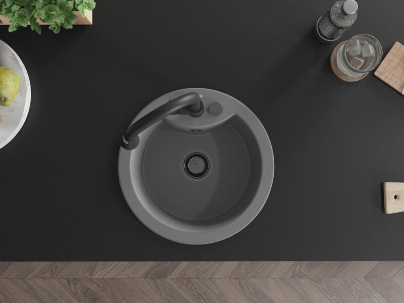 MEXEN/S MEXEN/S – Diego granitový drez 1-miska vrátane batérie Elia, šedá 6512-71-670101-70-B
