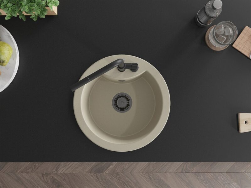 MEXEN/S MEXEN/S – Diego granitový drez 1-miska vrátane batérie Flora, béžová 6512-69-670401-70-B