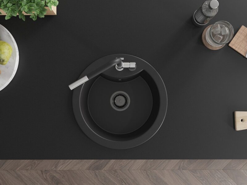 Technické dáta: drez: Rozmery: 488 x 488 x 167 mm Hĺbka komory: 157 mm Šírka komory: 406 mm Priemer odtoku: ø90 mm Typ: 1-komorový Typ: Zapustené do pracovnej dosky Čierna farba Povrchová úprava sifónu: čierna Materiál: žula (80% žulové kamenivo, 20% živice) Prepadový otvor: Áno Otvory: (batérie, automatické) 2 Vysoká odolnosť proti poškriabaniu a zmene farby Odolnosť proti tepelným šokom Ľahko čistiteľný povrch Jeden dodatočný vyfrézovaný otvor na samodierovanie ø35 kuchynská batéria: Materiál: mosadz Farba: chróm/čierna Hlava: Keramická Prevzdušňovač: Áno Typ: Jedna páka Rozsah výtoku: 245 mm Výška batérie: 307 mm(GT) Ean: 5905315060914