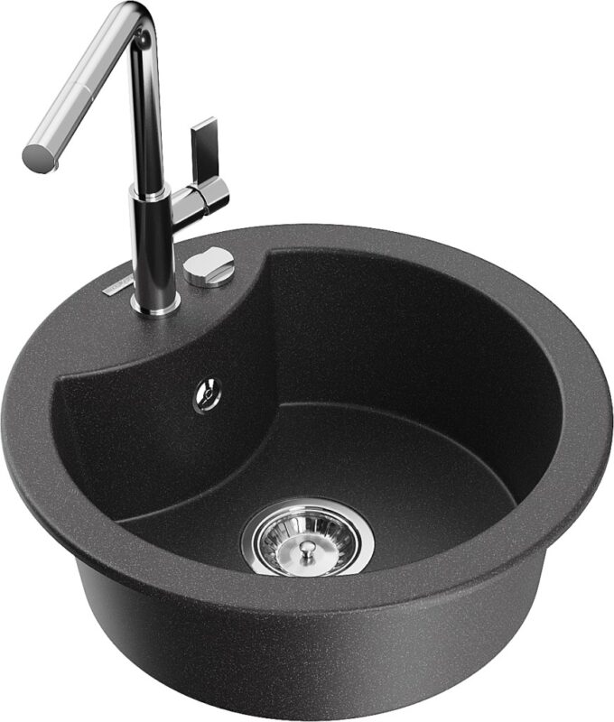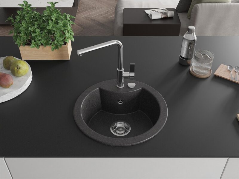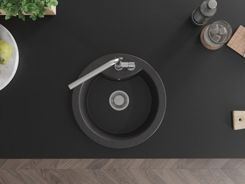 Technické dáta: drez: Rozmery: 488 x 488 x 167 mm Hĺbka komory: 157 mm Šírka komory: 406 mm Priemer odtoku: ø90 mm Typ: 1-komorový Typ: Zapustené do pracovnej dosky Farba: Škvrnitá čierna Povrchová úprava sifónu: Chrome Materiál: žula (80% žulové kamenivo, 20% živice) Prepadový otvor: Áno Otvory: (batérie, automatické) 2 Vysoká odolnosť proti poškriabaniu a zmene farby Odolnosť proti tepelným šokom Ľahko čistiteľný povrch Jeden dodatočný vyfrézovaný otvor na samodierovanie ø35 kuchynská batéria: Materiál: mosadz Farba: Chrome Hlava: Keramická Prevzdušňovač: Áno Typ: Jedna páka Rozsah výtoku: 245 mm Výška batérie: 307 mm(GT) Ean: 5905315060792