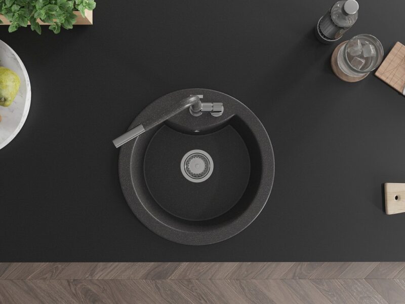 Technické dáta: drez: Rozmery: 488 x 488 x 167 mm Hĺbka komory: 157 mm Šírka komory: 406 mm Priemer odtoku: ø90 mm Typ: 1-komorový Typ: Zapustené do pracovnej dosky Farba: Škvrnitá čierna Povrchová úprava sifónu: Chrome Materiál: žula (80% žulové kamenivo, 20% živice) Prepadový otvor: Áno Otvory: (batérie, automatické) 2 Vysoká odolnosť proti poškriabaniu a zmene farby Odolnosť proti tepelným šokom Ľahko čistiteľný povrch Jeden dodatočný vyfrézovaný otvor na samodierovanie ø35 kuchynská batéria: Materiál: mosadz Farba: chróm/čierna škvrnitá Hlava: Keramická Prevzdušňovač: Áno Typ: Jedna páka Rozsah výtoku: 245 mm Výška batérie: 307 mm(GT) Ean: 5905315060822