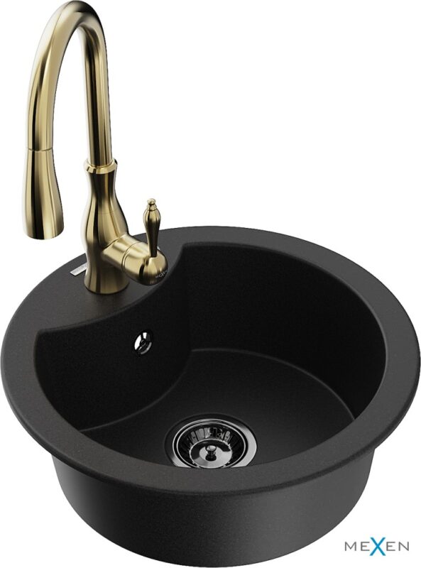 MEXEN/S MEXEN/S – Diego granitový drez 1-miska vrátane batérie Savita, čierna 6512-77-672601-50-B