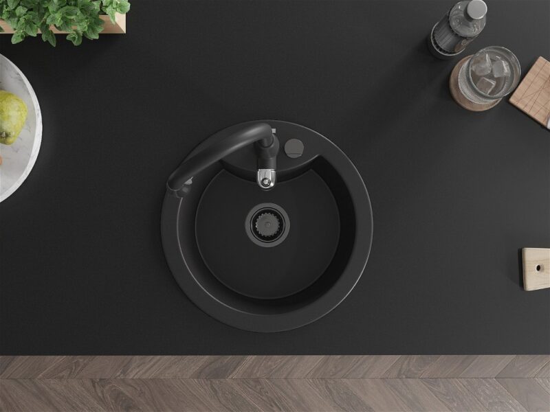 MEXEN/S MEXEN/S – Diego granitový drez 1-miska vrátane batérie Savita, čierna 6512-77-672601-70-B