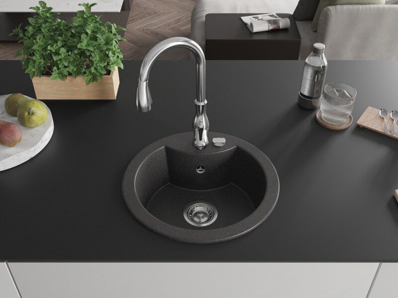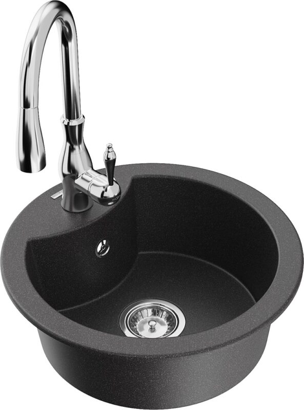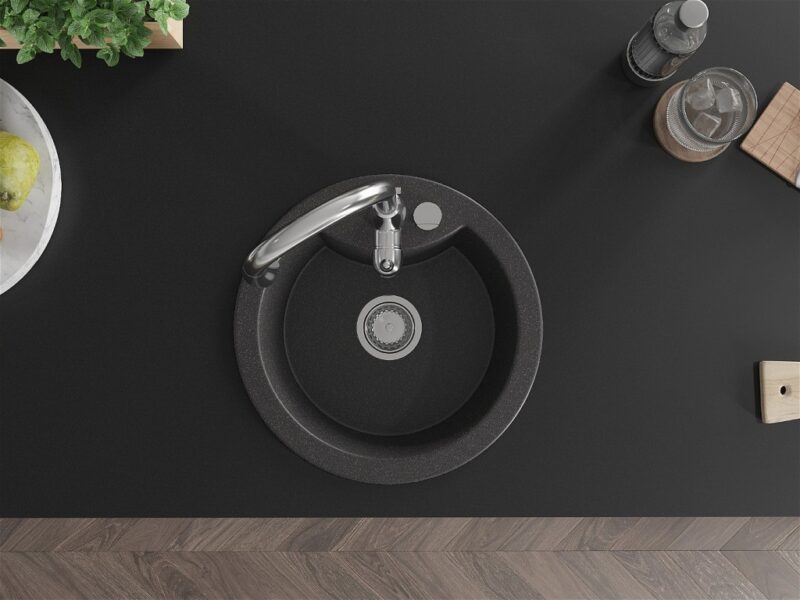 Technické dáta: drez: Rozmery: 488 x 488 x 167 mm Hĺbka komory: 157 mm Šírka komory: 406 mm Priemer odtoku: ø90 mm Typ: 1-komorový Typ: Zapustené do pracovnej dosky Farba: Škvrnitá čierna Povrchová úprava sifónu: Chrome Materiál: žula (80% žulové kamenivo, 20% živice) Prepadový otvor: Áno Otvory: (batérie, automatické) 2 Vysoká odolnosť proti poškriabaniu a zmene farby Odolnosť proti tepelným šokom Ľahko čistiteľný povrch Jeden dodatočný vyfrézovaný otvor na samodierovanie ø35 kuchynská batéria: Materiál: mosadz Farba: Chrome Hlava: Keramická Prevzdušňovač: Áno Typ: Jedna páka Výška batérie: 410 mm Rozsah výtoku: 231 mm(GT) Ean: 5905315035349