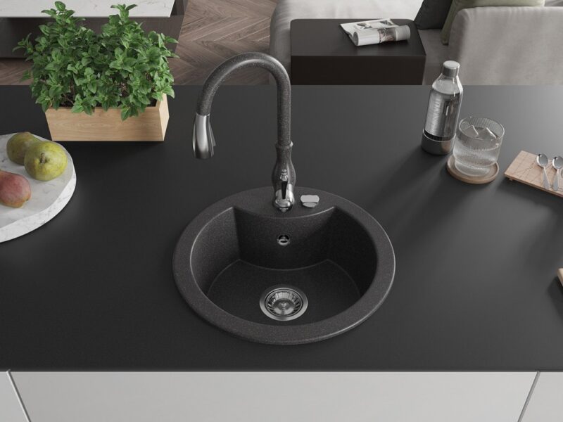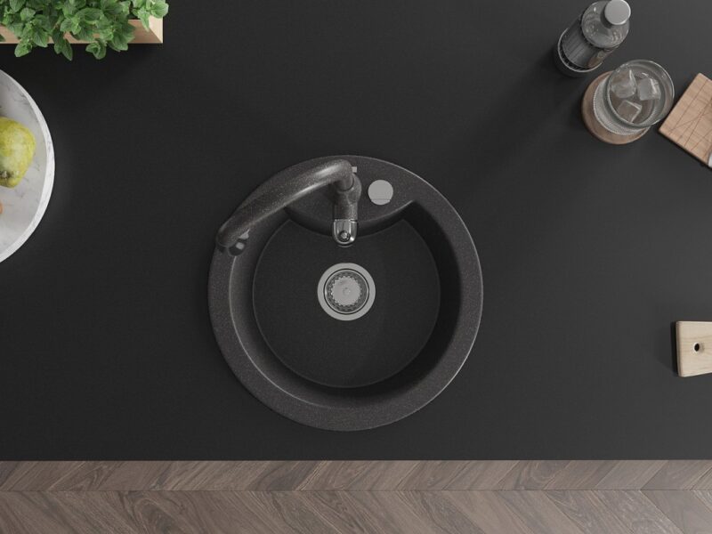 Technické dáta: drez: Rozmery: 488 x 488 x 167 mm Hĺbka komory: 157 mm Šírka komory: 406 mm Priemer odtoku: ø90 mm Typ: 1-komorový Typ: Zapustené do pracovnej dosky Farba: Škvrnitá čierna Povrchová úprava sifónu: Chrome Materiál: žula (80% žulové kamenivo, 20% živice) Prepadový otvor: Áno Otvory: (batérie, automatické) 2 Vysoká odolnosť proti poškriabaniu a zmene farby Odolnosť proti tepelným šokom Ľahko čistiteľný povrch Jeden dodatočný vyfrézovaný otvor na samodierovanie ø35 kuchynská batéria: Materiál: mosadz Farba: Škvrnitá čierna Hlava: Keramická Prevzdušňovač: Áno Typ: Jedna páka Výška batérie: 410 mm Rozsah výtoku: 231 mm(GT) Ean: 5905315035387