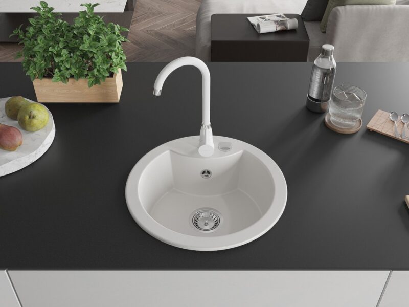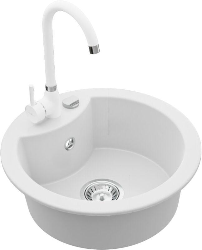 MEXEN/S MEXEN/S – Diego granitový drez 1-miska vrátane batérie Telma, biela 6512-20-670200-20