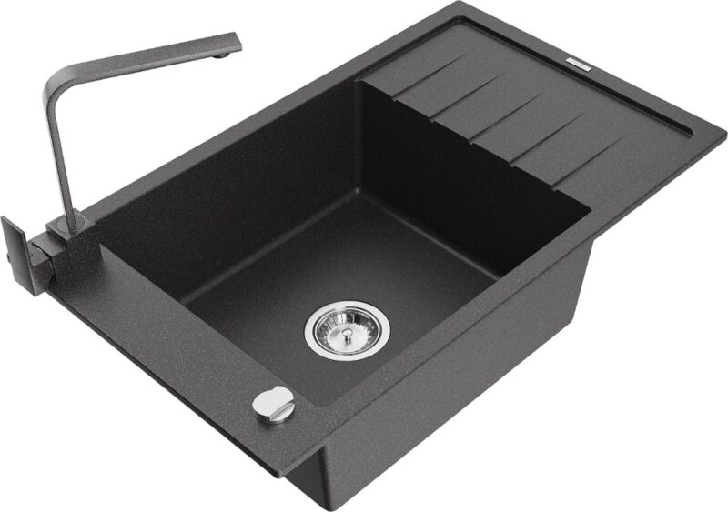 Technické dáta: drez: Rozmer: 795 x 480 x 200 mm Hĺbka komory: 190 mm Rozmery komory: 465×420 mm Priemer odtoku: ø90 mm Typ: 1-miska s krátkym odkvapkávačom Typ: Zapustené do pracovnej dosky Farba: Škvrnitá čierna Povrchová úprava sifónu: Chrome Materiál: žula (80% žulové kamenivo, 20% živice) Prepadový otvor: Áno Otvory: (batérie, automatické) 2 Inštalácia: Univerzálna, je možné inštalovať s odkvapkávačom na ľavú alebo pravú stranu Vysoká odolnosť proti poškriabaniu a zmene farby Odolnosť proti tepelným šokom Ľahko čistiteľný povrch Jeden dodatočný vyfrézovaný otvor na samodierovanie ø35 kuchynská batéria: Materiál: mosadz Farba: Škvrnitá čierna Hlava: Keramická Prevzdušňovač: Áno Typ: Jedna páka Výška batérie: 290 mm Rozsah výtoku: 220 mm(GT) Ean: 5905315019714