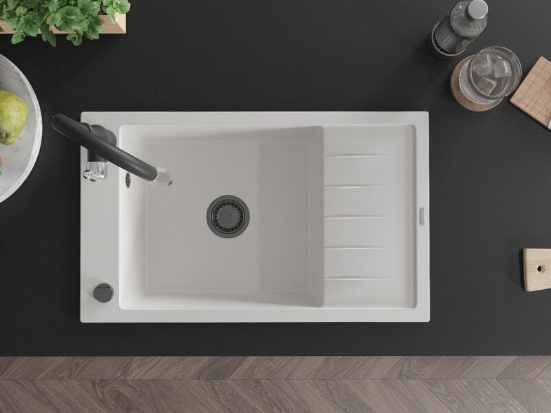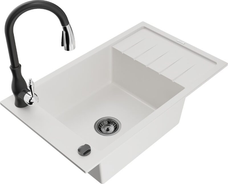 MEXEN/S MEXEN/S – Elias granitový drez 1-miska s odkvapkávačom vrátane batérie Savita, biela 6511-20-672601-70