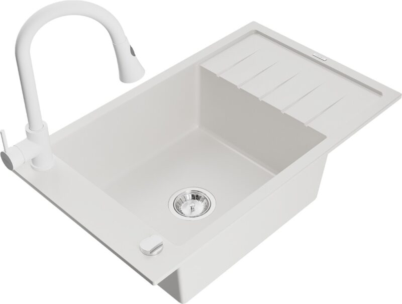 MEXEN/S MEXEN/S – Elias granitový drez 1 s odkvapkávačom vrátane batérie Elia, biela 6511-20-670101-20