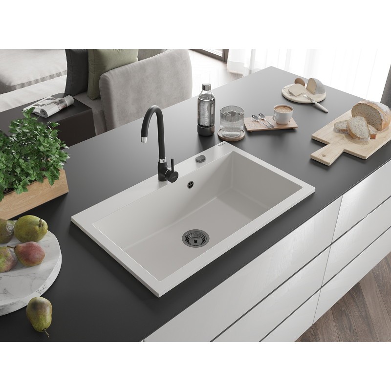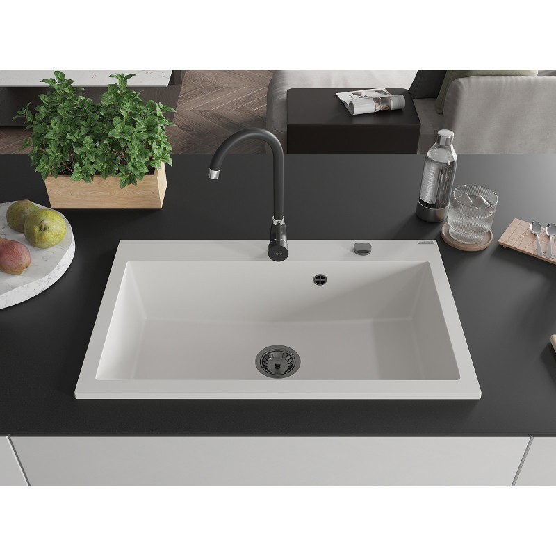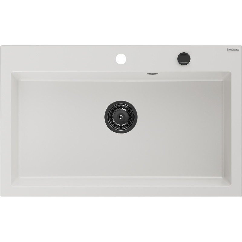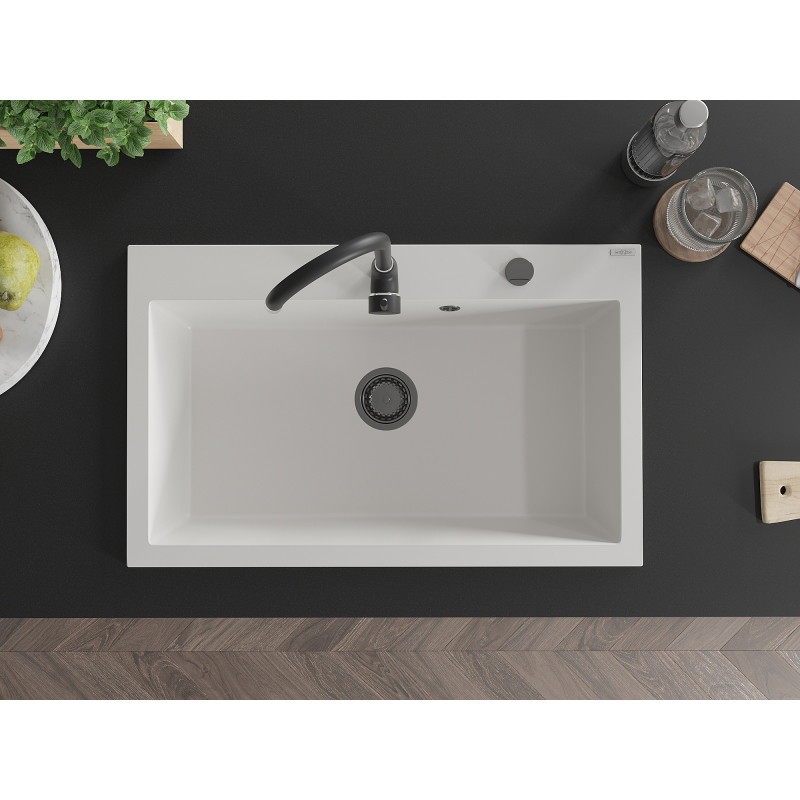 MEXEN/S MEXEN/S – Elix granitový drez 1-miska 800 x 500 mm, biela, sifón čierna 6527801005-20-B