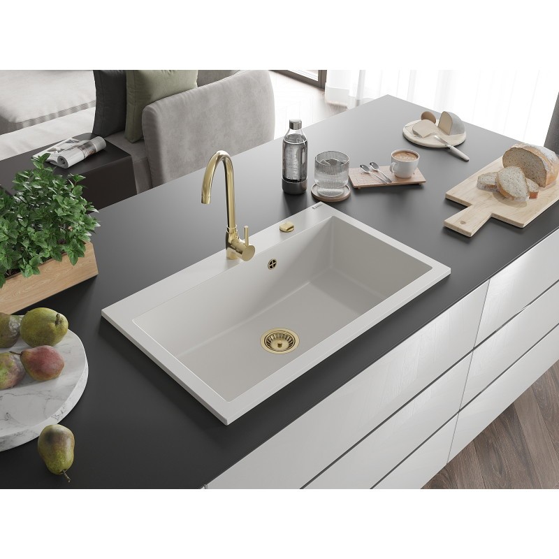 MEXEN/S MEXEN/S – Elix granitový drez 1-miska 800 x 500 mm, biela, sifón zlatá 6527801005-20-G