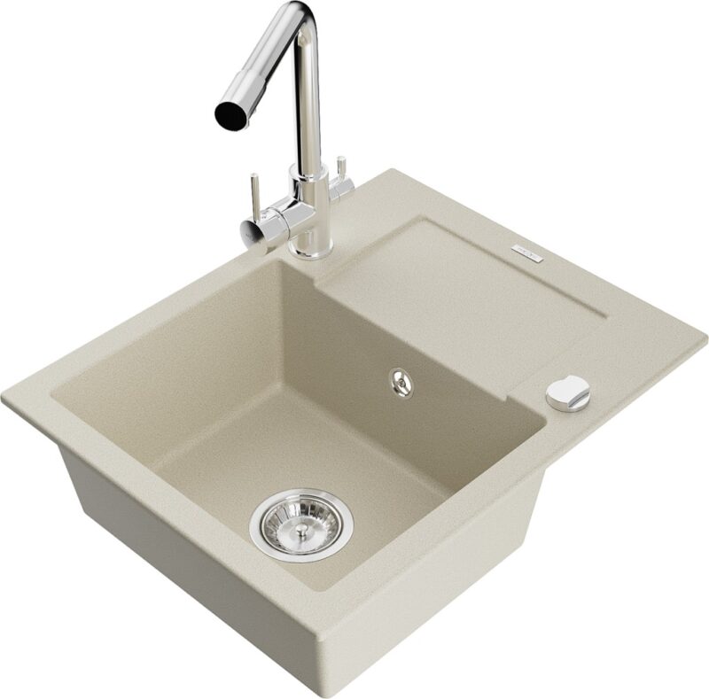 MEXEN/S MEXEN/S – Enzo granitový drez 1-miska s odkvapkávačom vrátane batérie Duero, béžová 6506-69-671600-00