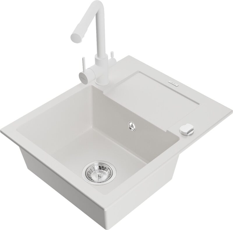 MEXEN/S MEXEN/S – Enzo granitový drez 1-miska s odkvapkávačom vrátane batérie Duero, biela 6506-20-671600-20