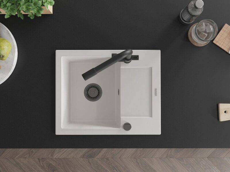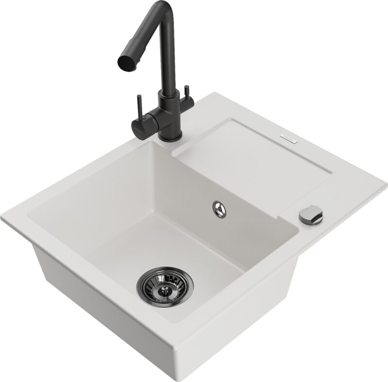 MEXEN/S MEXEN/S – Enzo granitový drez 1-miska s odkvapkávačom vrátane batérie Duero, biela 6506-20-671600-70