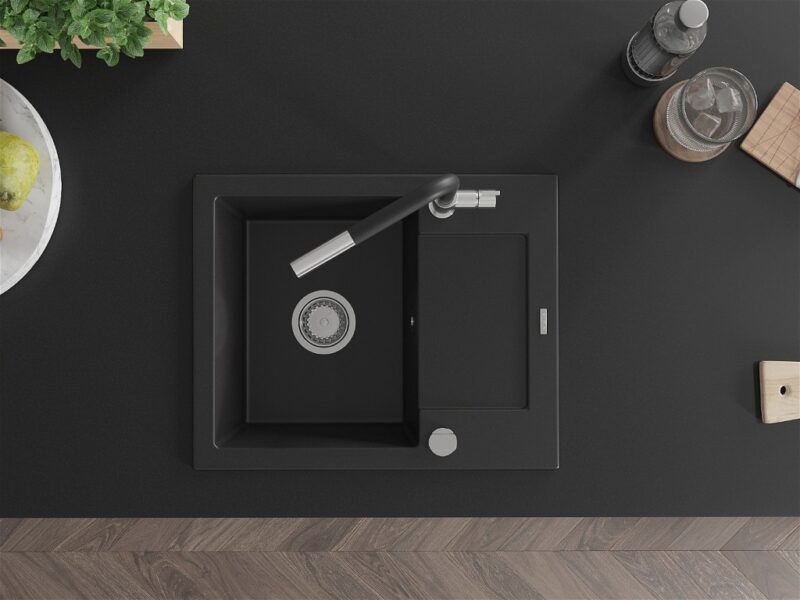 MEXEN/S MEXEN/S – Enzo granitový drez 1-miska s odkvapkávačom vrátane batérie Flora, čierna 6506-77-670401-07