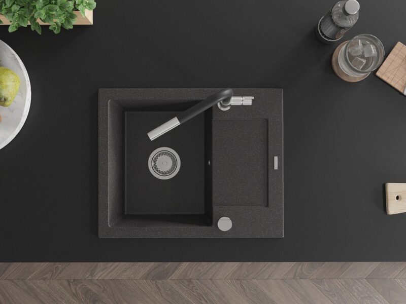 Technické dáta: drez: Rozmer: 576x465x174mm Hĺbka komory: 164 mm Rozmery komory: 395×320 mm Priemer odtoku: ø90 mm Typ: 1-miska s krátkym odkvapkávačom Typ: Zapustené do pracovnej dosky Farba: Škvrnitá čierna Povrchová úprava sifónu: Chrome Materiál: žula (80% žulové kamenivo, 20% živice) Prepadový otvor: Áno Otvory: (batérie, automatické) 2 Inštalácia: Univerzálna, je možné inštalovať s odkvapkávačom na ľavú alebo pravú stranu Vysoká odolnosť proti poškriabaniu a zmene farby Odolnosť proti tepelným šokom Ľahko čistiteľný povrch Dva dodatočné vyfrézované otvory na samodierovanie ø35 kuchynská batéria: Materiál: mosadz Farba: chróm/čierna Hlava: Keramická Prevzdušňovač: Áno Typ: Jedna páka Rozsah výtoku: 245 mm Výška batérie: 307 mm(GT) Ean: 5905315058805