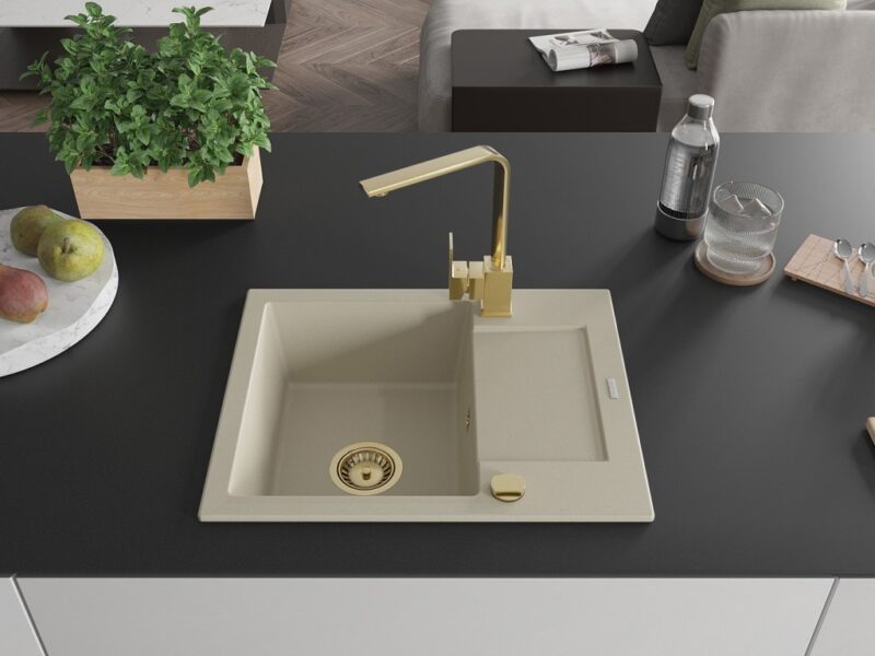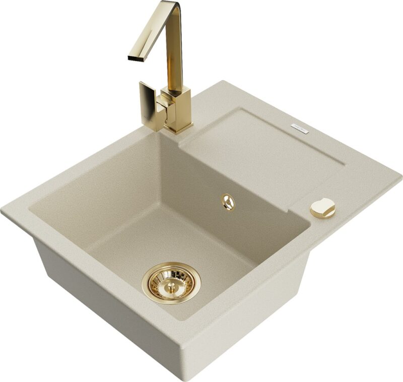 MEXEN/S MEXEN/S – Enzo granitový drez 1-miska s odkvapkávačom vrátane batérie Rita, béžový 6506-69-670300-50