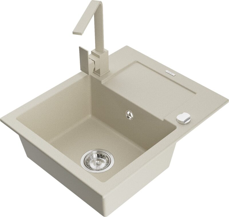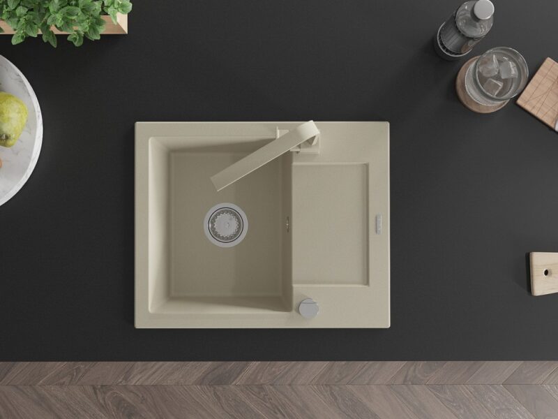 MEXEN/S MEXEN/S – Enzo granitový drez 1-miska s odkvapkávačom vrátane batérie Rita, béžový 6506-69-670300-69