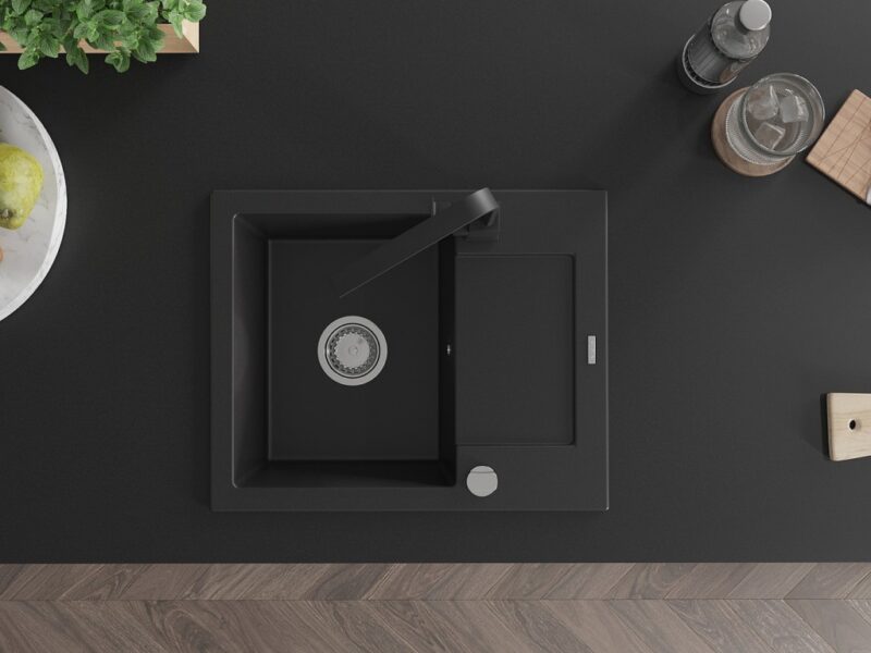MEXEN/S MEXEN/S – Enzo granitový drez 1-miska s odkvapkávačom vrátane batérie Rita, čierny 6506-77-670300-70