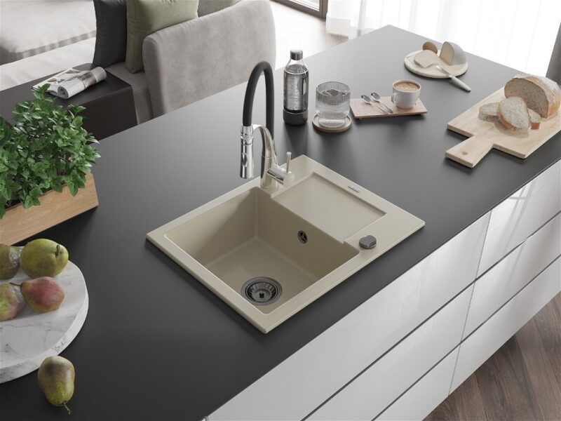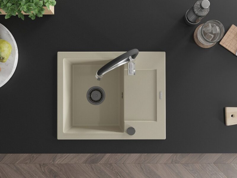 MEXEN/S MEXEN/S – Enzo granitový drez 1 s odkvapkávačom vrátane batérie Aster, béžová 6506-69-73450-07-B