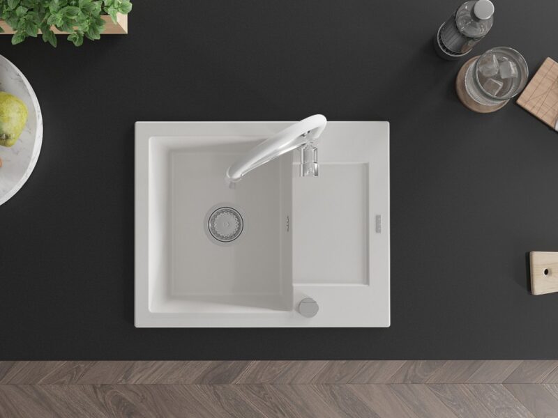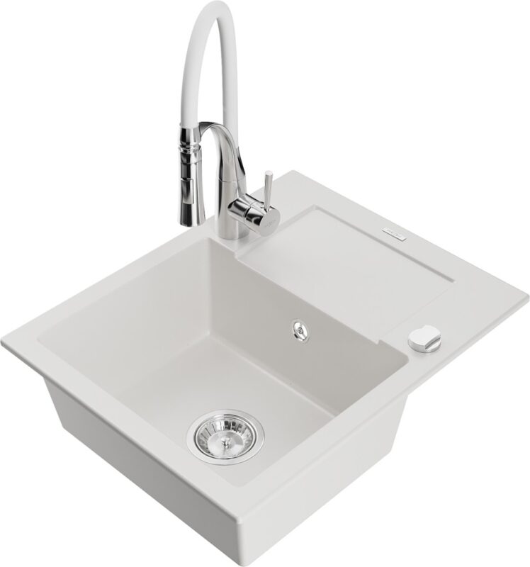 MEXEN/S MEXEN/S – Enzo granitový drez 1 s odkvapkávačom vrátane batérie Aster, biela 6506-20-73450-02