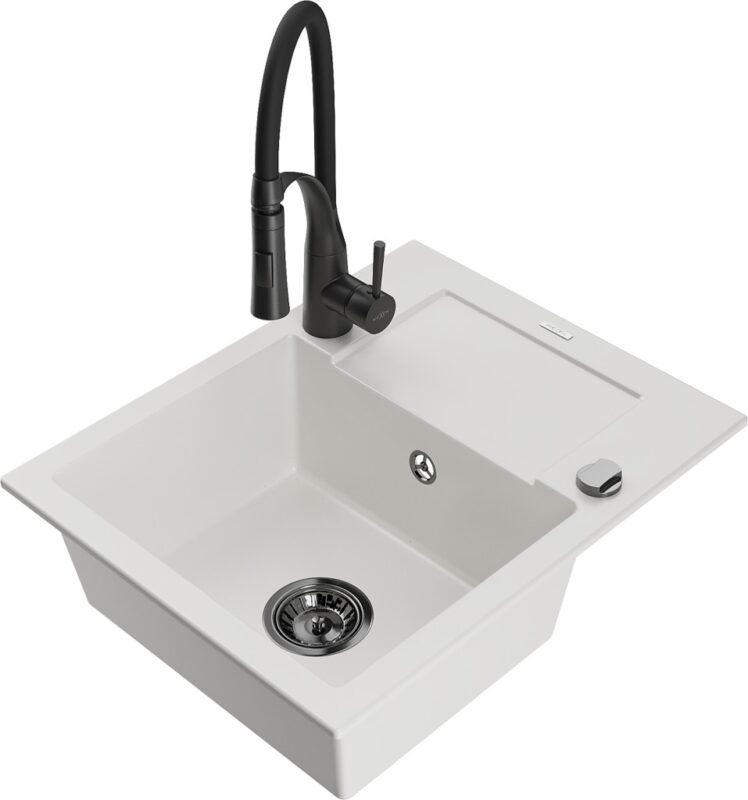 MEXEN/S MEXEN/S – Enzo granitový drez 1 s odkvapkávačom vrátane batérie Aster, biela 6506-20-73450-70-B