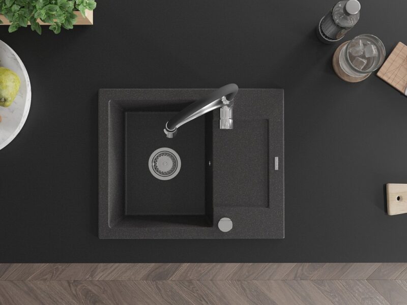 Technické dáta: drez: Rozmer: 576x465x174mm Hĺbka komory: 164 mm Rozmery komory: 395×320 mm Priemer odtoku: ø90 mm Typ: 1-miska s krátkym odkvapkávačom Typ: Zapustené do pracovnej dosky Farba: Škvrnitá čierna Povrchová úprava sifónu: Chrome Materiál: žula (80% žulové kamenivo, 20% živice) Prepadový otvor: Áno Otvory: (batérie, automatické) 2 Inštalácia: Univerzálna, je možné inštalovať s odkvapkávačom na ľavú alebo pravú stranu Vysoká odolnosť proti poškriabaniu a zmene farby Odolnosť proti tepelným šokom Ľahko čistiteľný povrch Dva dodatočné vyfrézované otvory na samodierovanie ø35 kuchynská batéria: Materiál: mosadz Farba: chróm/čierna Hlava: Keramická Prevzdušňovač: Áno Typ: Jedna páka Výška batérie: 430 mm Rozsah výtoku: 185 mm Batéria má výsuvný výtok(GT) Ean: 5905315044921